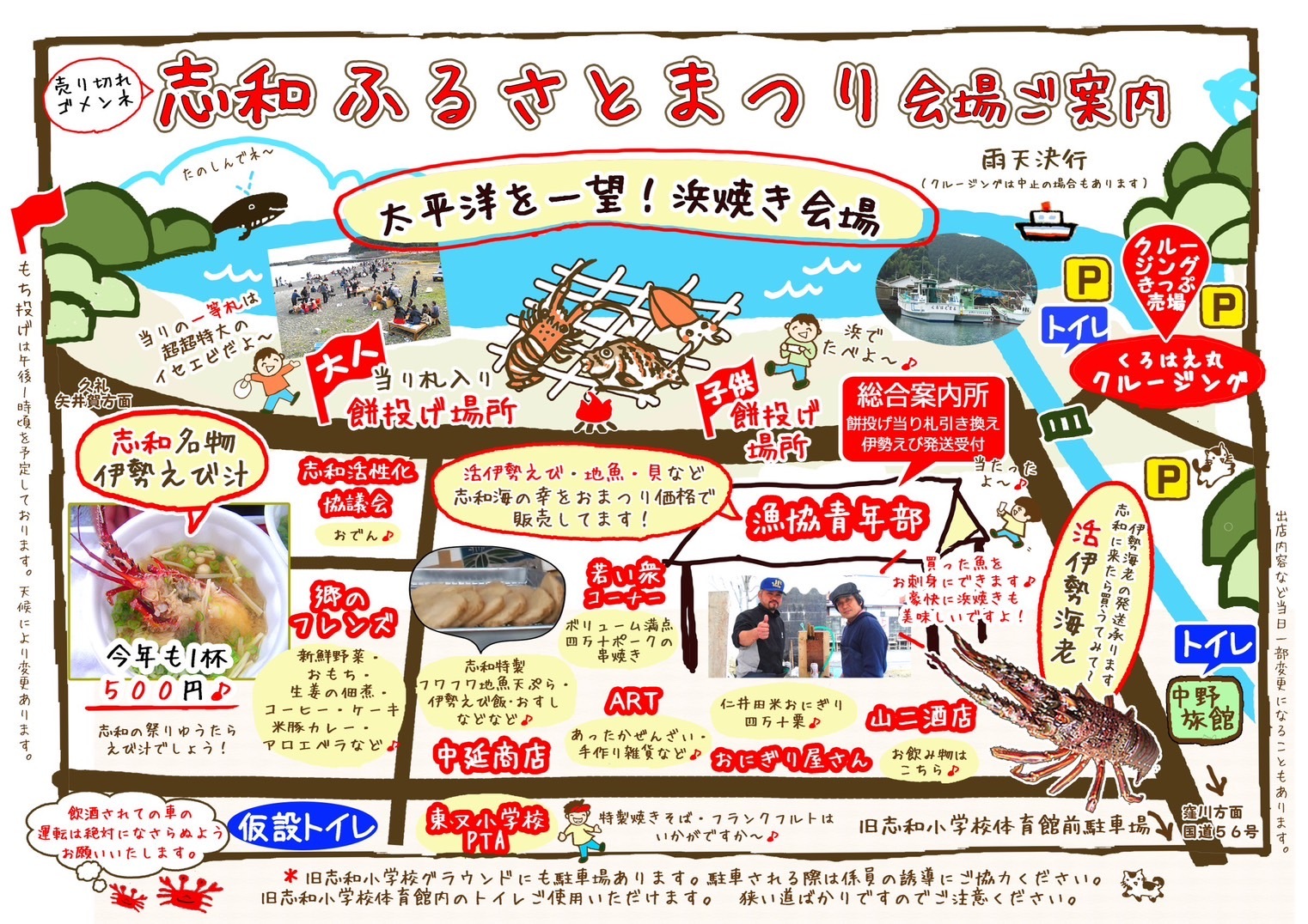 場所は、志和バス停付近からおまつり会場、志和海岸、志和漁港付近です